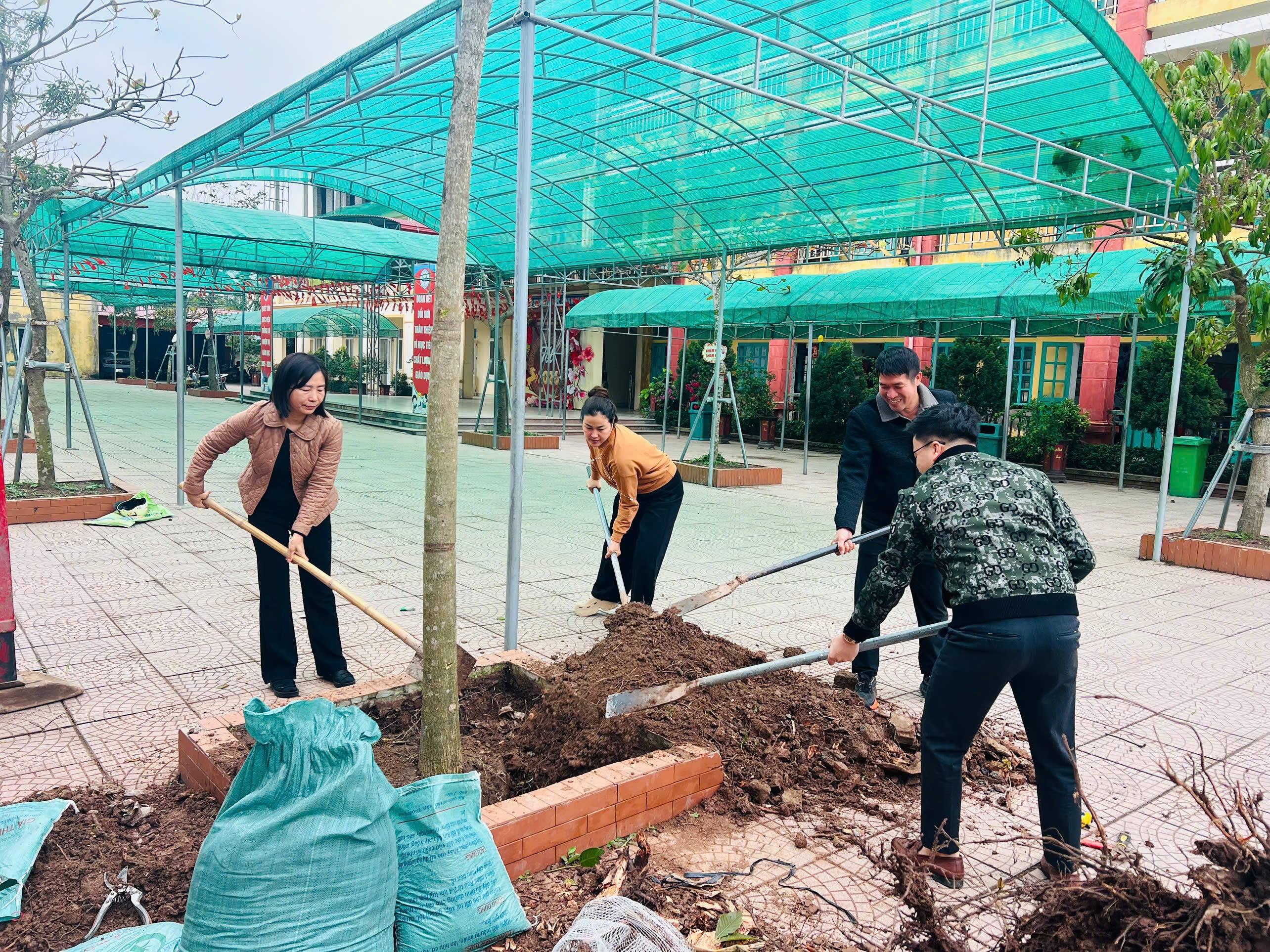 Trong không khí rộn ràng của mùa xuân, Ban giám hiệu nhà trường cùng toàn thể cán bộ, giáo viên, nhân viên và các em học sinh đã tích cực tham gia trồng và chăm sóc những cây xanh mới. Từng hố đất được vun lên, từng cây non được đặt xuống với sự nâng niu, cẩn thận, gửi gắm trong đó niềm tin và hy vọng về sự sinh trưởng, phát triển xanh tốt trong tương lai. Chỉ trong một thời gian ngắn, nhiều cây xanh đã được trồng mới, góp phần làm cho khuôn viên nhà trường thêm xanh mát, tạo cảnh quan sư phạm thân thiện và gần gũi với thiên nhiên.