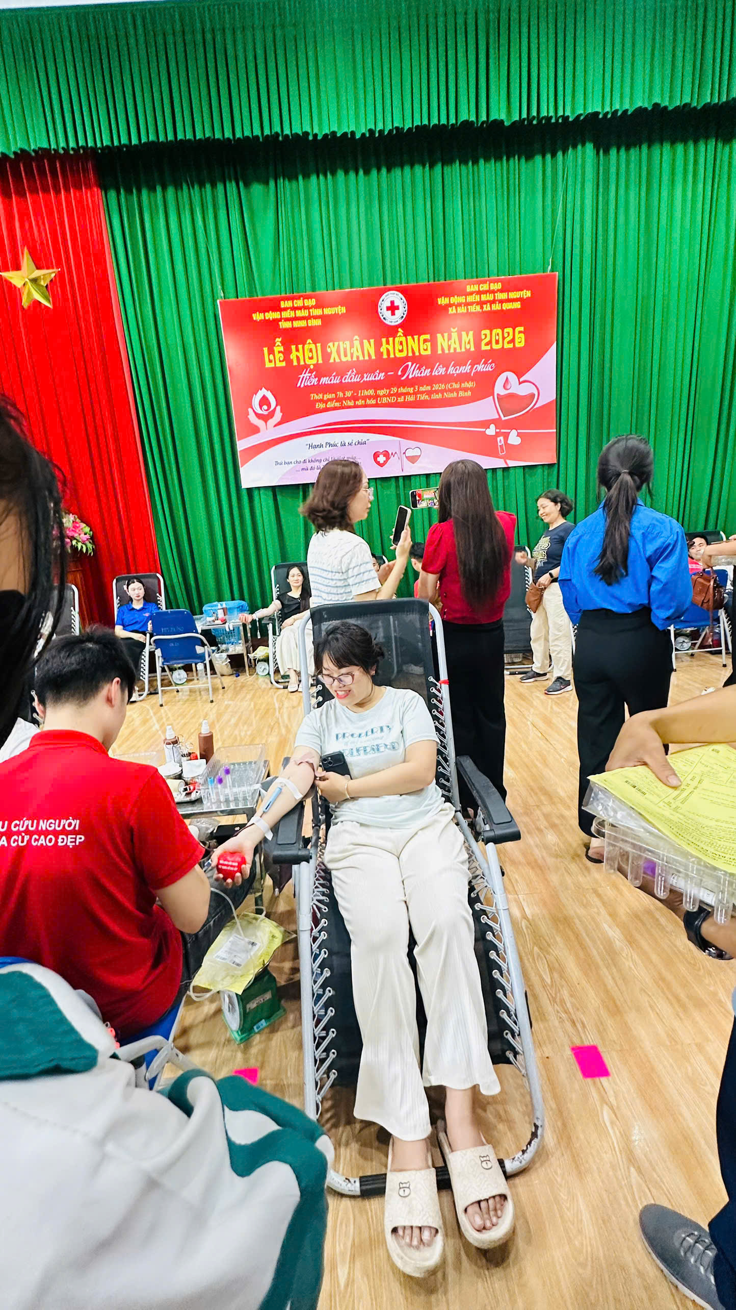 Sáng ngày 29/3/2026, tại trụ sở UBND xã Hải Tiến, Ban Chỉ đạo vận động Hiến máu tình nguyện tỉnh phối hợp với Hội Chữ thập đỏ tỉnh và UBND xã Hải Tiến đã tổ chức Lễ hội Xuân hồng năm 2026 với chủ đề: “Hiến máu đầu Xuân – Nhân lên hạnh phúc”. Hòa chung không khí ấm áp, nghĩa tình của ngày hội, các thầy cô giáo Trường Tiểu học Hải Lý đã tích cực hưởng ứng và tham gia hiến máu tình nguyện.
