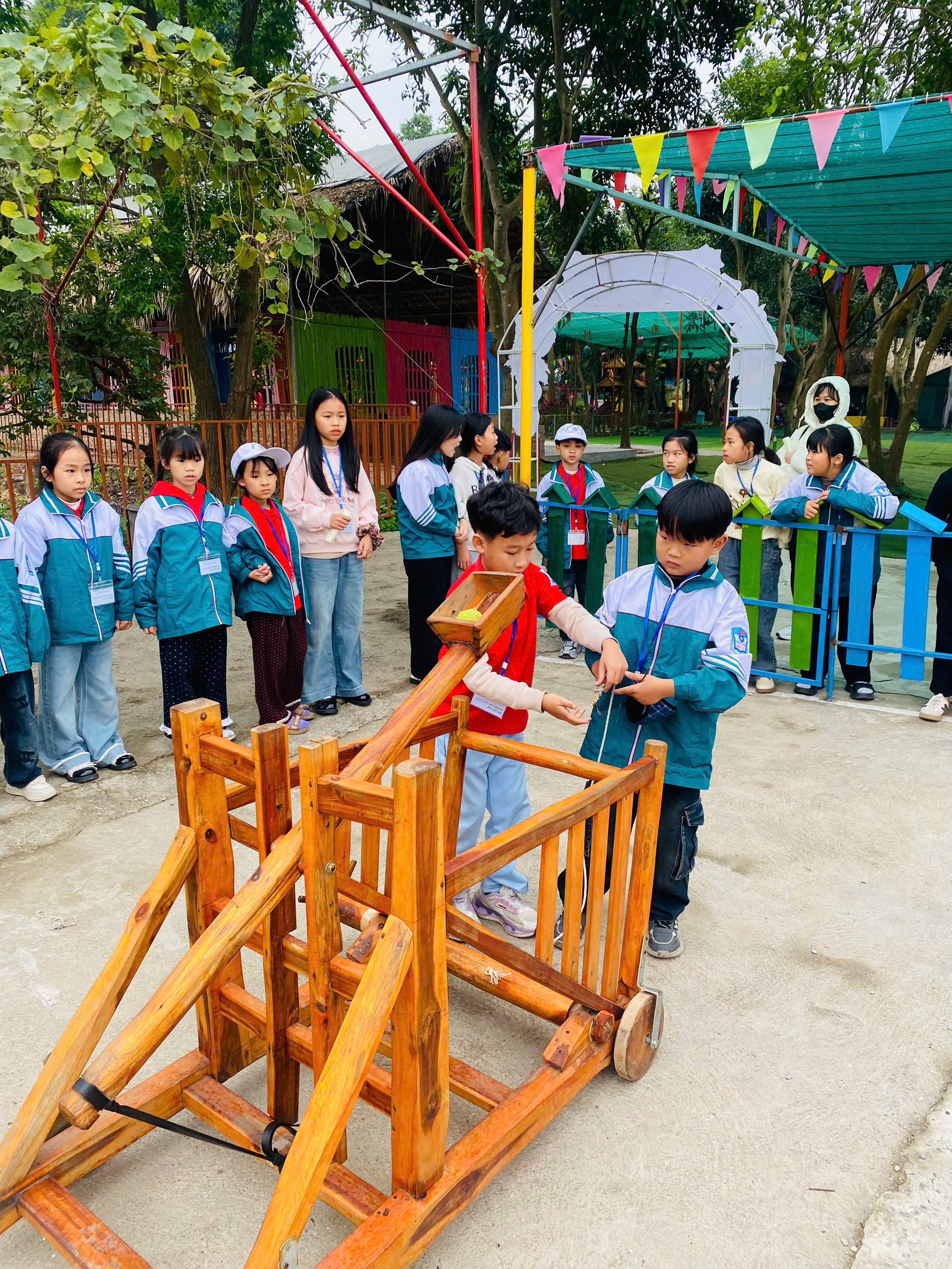 Buổi chiều, hành trình tiếp nối tại Trang trại Giáo dục Vạn An, nơi học sinh được tham gia chuỗi hoạt động trải nghiệm đa dạng, được thiết kế khoa học theo các “kỷ nguyên” phát triển của nhân loại – từ truyền thống đến hiện đại, từ thiên nhiên đến công nghệ.