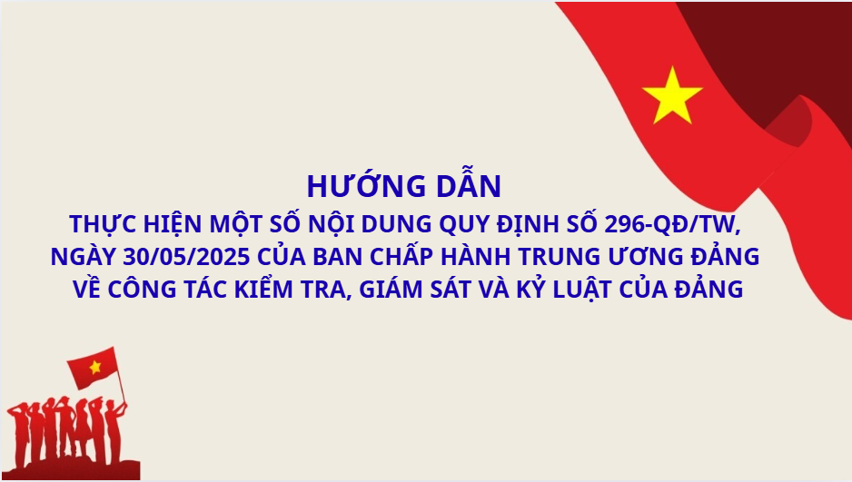 HƯỚNG DẪN THỰC HIỆN MỘT SỐ NỘI DUNG QUY ĐỊNH SỐ 296-QĐ/TW, NGÀY 30/05/2025 CỦA BAN CHẤP HÀNH TRUNG ƯƠNG ĐẢNG VỀ CÔNG TÁC KIỂM TRA, GIÁM SÁT VÀ KỶ LUẬT CỦA ĐẢNG