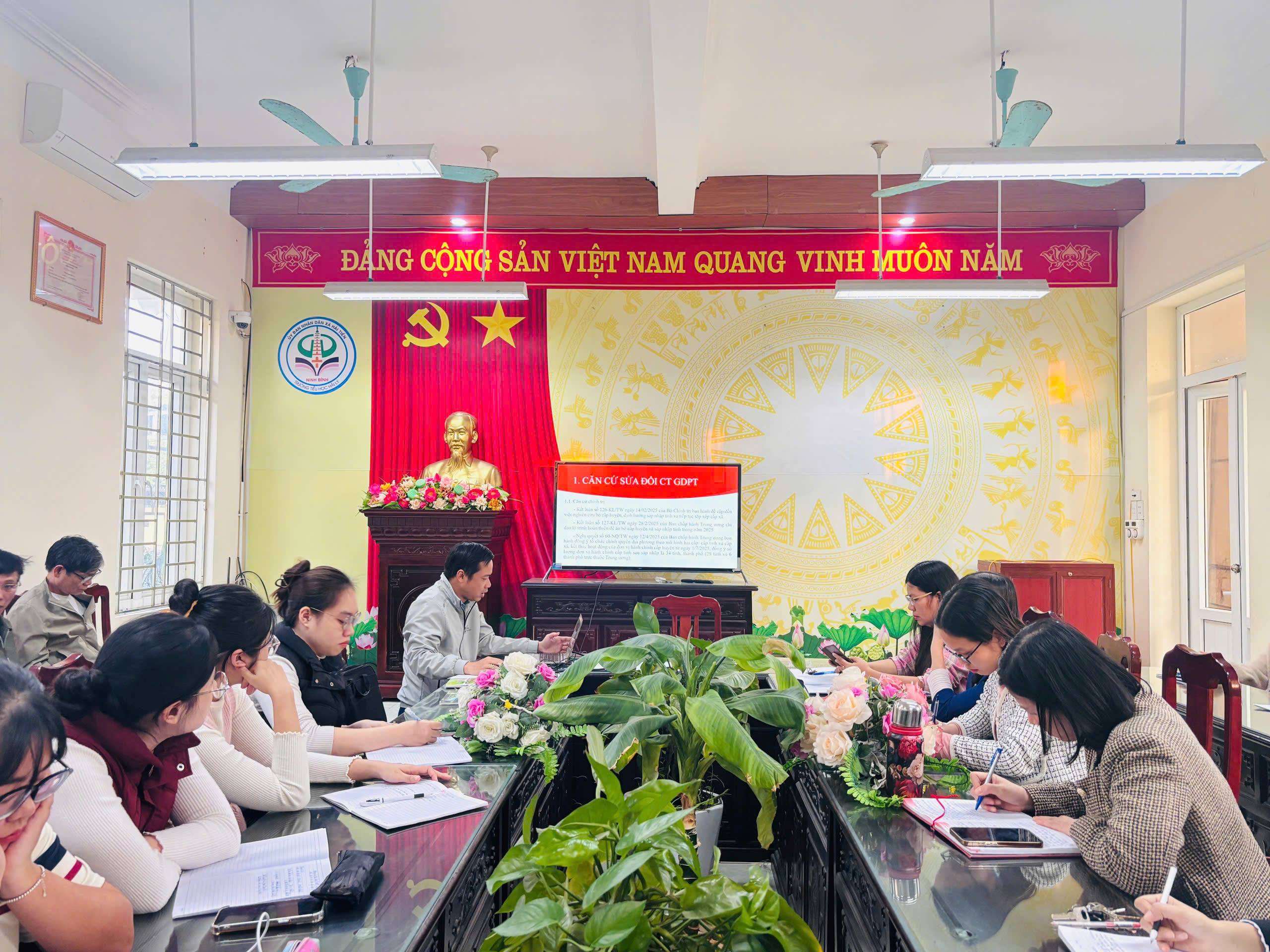 Thực hiện chỉ đạo của Sở Giáo dục và Đào tạo Ninh Bình về việc triển khai Thông tư số 17/2025/TT-BGDĐT, chiều ngày 26/11/2025, Trường Tiểu học Hải Lý đã tổ chức buổi tập huấn chuyên môn dành cho toàn thể giáo viên nhằm cập nhật những điều chỉnh mới trong Chương trình giáo dục phổ thông đối với môn Lịch sử và Địa lí cấp Tiểu học. Đây là hoạt động thiết thực, có ý nghĩa quan trọng giúp giáo viên nắm vững tinh thần thay đổi của chương trình, từ đó tổ chức dạy học phù hợp với yêu cầu mới và thực tiễn địa phương.