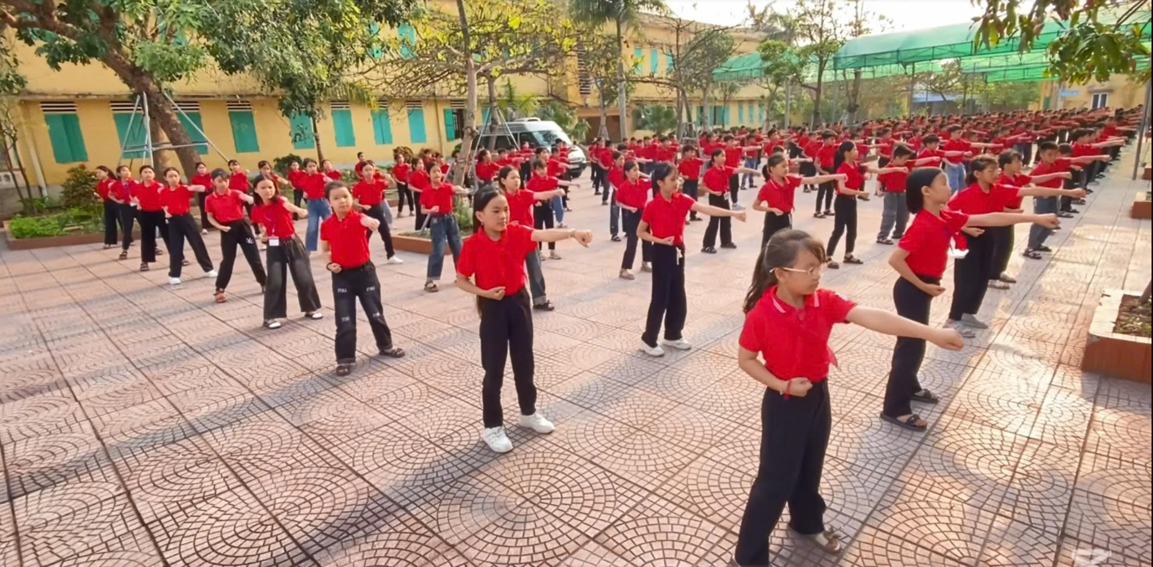 Nhận thức rõ ý nghĩa và tầm quan trọng của hoạt động này, nhà trường đã đưa bài võ nhạc Vovinam vào nền nếp tập luyện hằng ngày trong các buổi thể dục sáng và giữa giờ. Đây không chỉ là hoạt động rèn luyện sức khỏe mà còn là phương thức giáo dục toàn diện, góp phần hình thành phẩm chất, đạo đức và lối sống lành mạnh cho học sinh. Qua đó, góp phần xây dựng môi trường học đường thân thiện, tích cực, hạn chế các hành vi tiêu cực và bạo lực học đường.