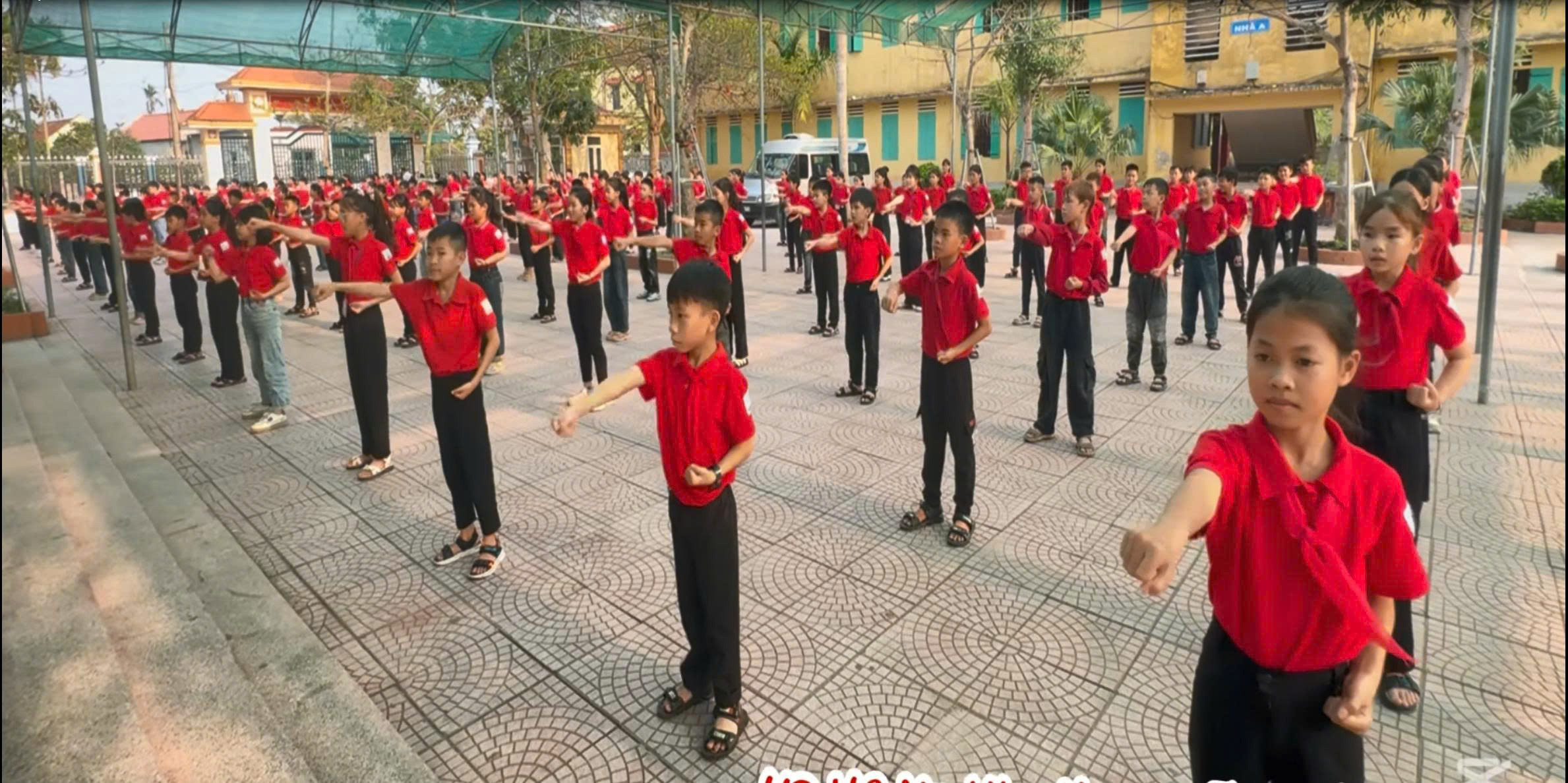 TRƯỜNG TIỂU HỌC HẢI LÝ TỔ CHỨC TẬP LUYỆN BÀI VÕ NHẠC VOVINAM CHO HỌC SINH